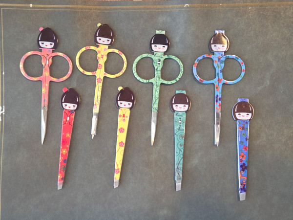 Coordinating scissors and tweezers with Kokeshi doll motif