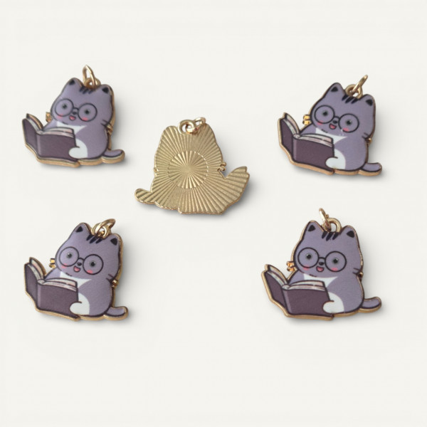 Metal Charms Bookworm Gray Cat (1)