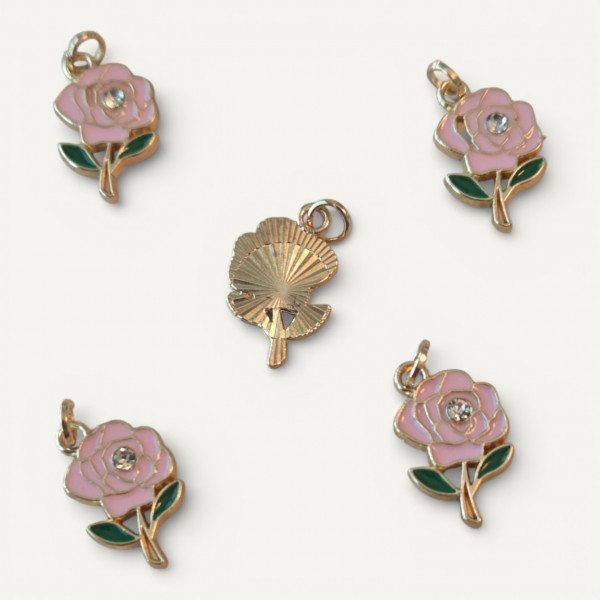 Metal Charms Pink Rose Crystal (1)